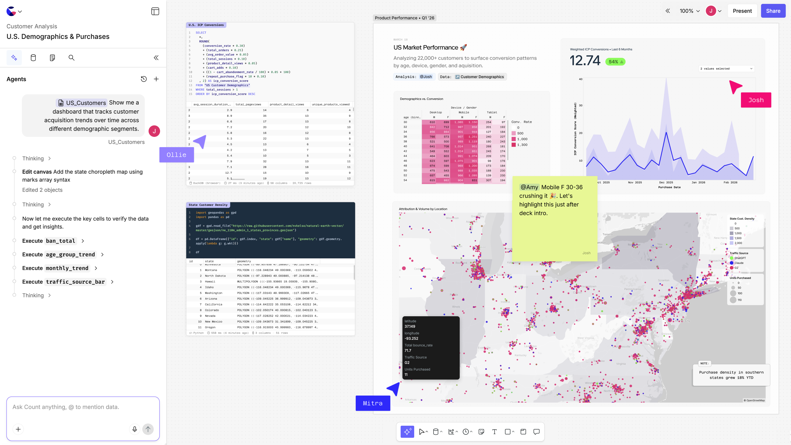 Count lets you explore your data, uncover what's driving your business, and decide what to do next — all in one collaborative canvas.